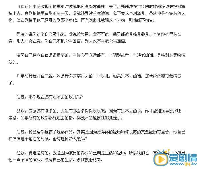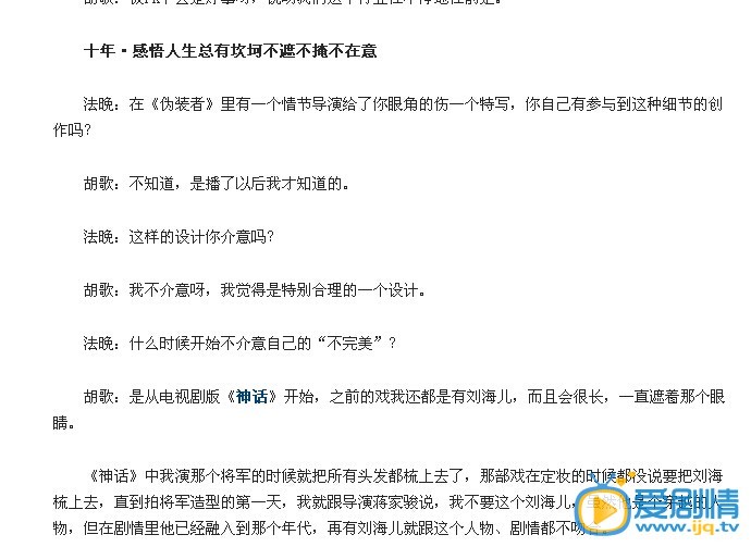 在近期的一个电话专访中,胡歌首度面对媒体回应其眼角的疤痕(2006年遭遇车祸受重伤所致),“把自己伤痕拿出来给大家看,证明我已经放下了。”